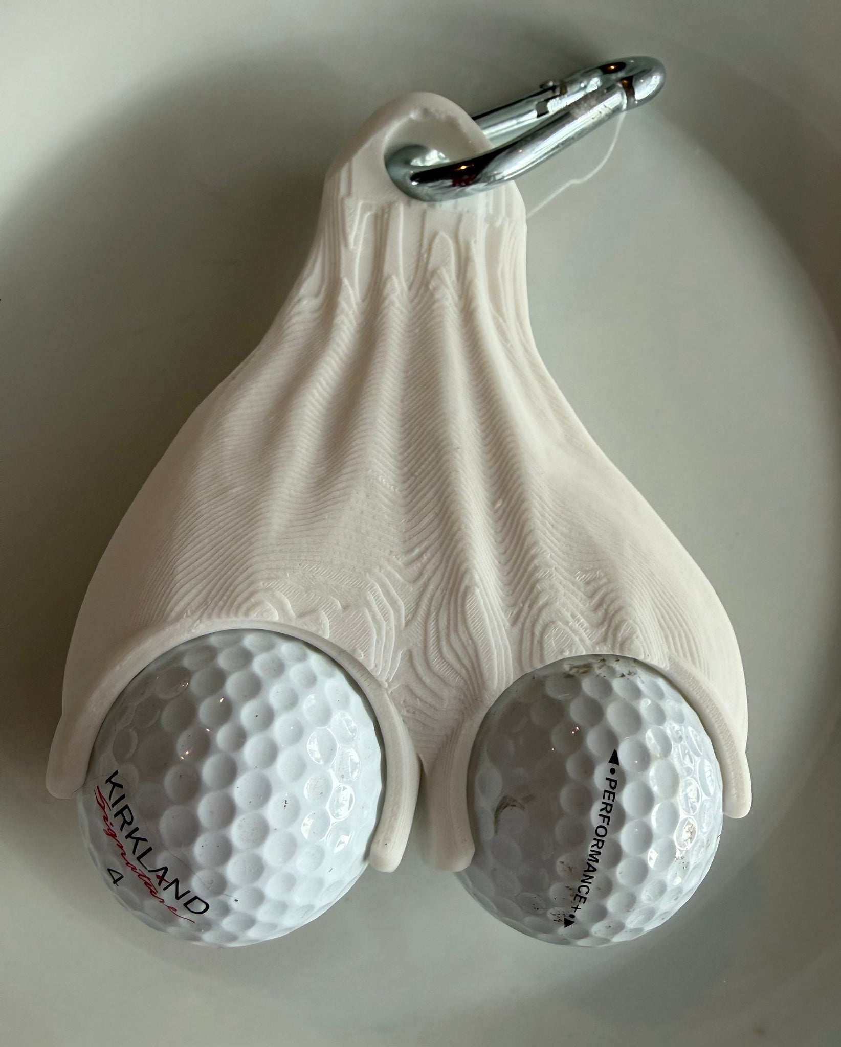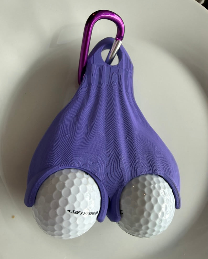 Comes with a carabiner and 2 golf balls